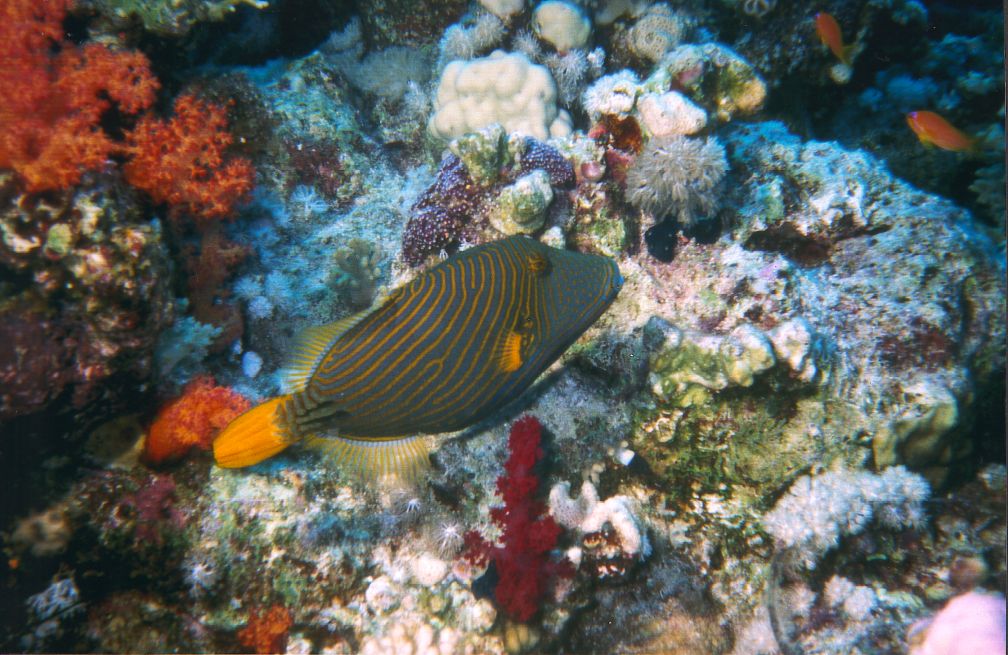 Gelbschwanz-DrückerfischBalistapus undulatusengl.: Orange-striped triggerfishF: Drückerfische - Balistidae